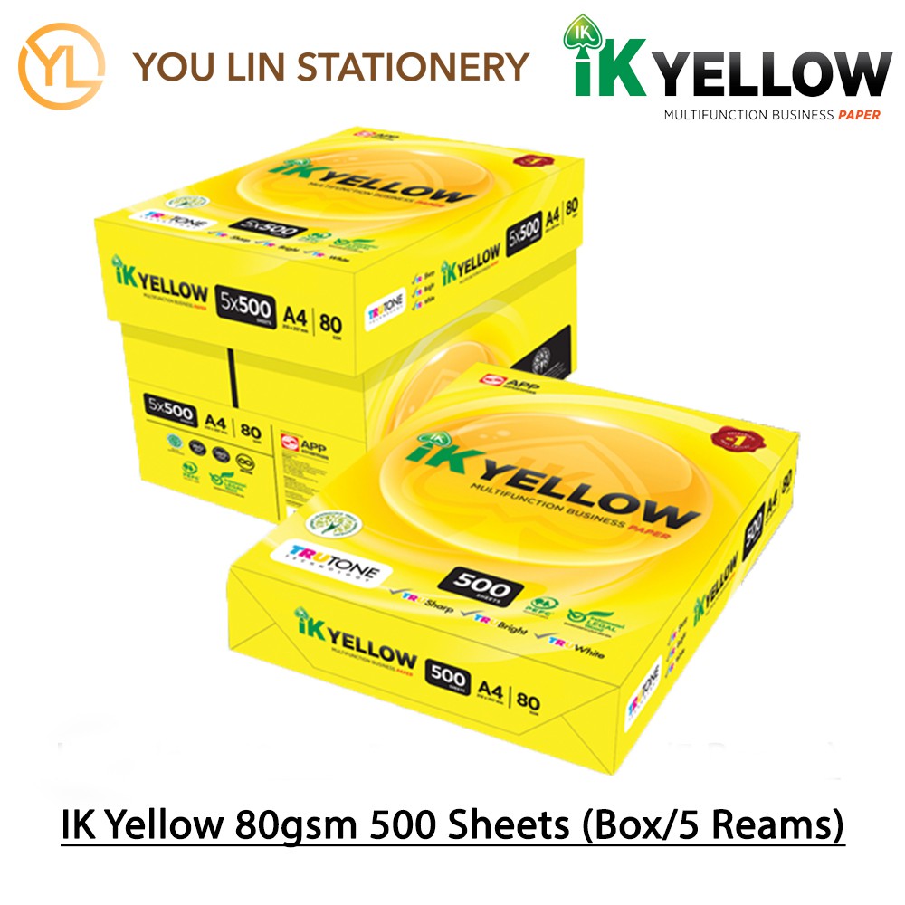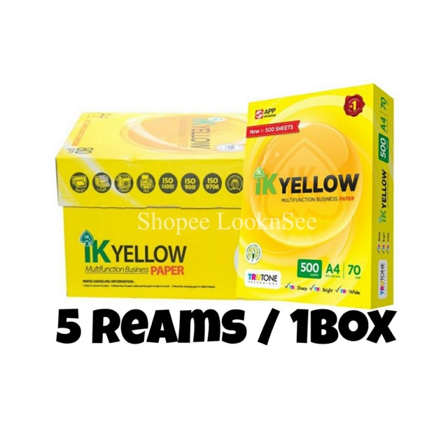 Ik Yellow A4 Paper 70gsm 80gsm 1 Box 5 Reams Shopee Malaysia